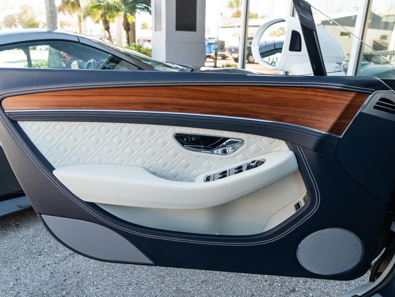 This 2022 Bentley Continental GTC V8 finished in the highly desirable Snow Quartz Pearlescent by Mulliner over a Linen interior presents an exceptional combination of handcrafted luxury and grand touring performance, showing only 4,182 miles. Beneath the sculpted hood sits a 4.0 liter twin turbocharged V8 producing 542 horsepower and 568 lb ft of torque, paired to an 8 speed dual clutch automatic transmission and Bentley's advanced all wheel drive system. Performance is impressive for a full size luxury convertible, with 0 to 60 mph achieved in just 3.9 seconds and a top speed of 198 mph. Despite its substantial presence and structural reinforcement required for an open top grand tourer, curb weight remains well managed at 5,414 lbs, contributing to confident high speed stability and long distance comfort. The chassis incorporates a sophisticated adaptive air suspension system with continuous damping control, active anti roll technology, and selectable drive modes that allow the car to transition seamlessly from relaxed cruising to dynamic sport driving. Mulliner specification elevates the craftsmanship further with diamond quilted leather, contrast stitching, bespoke trim finishes, and distinctive exterior detailing that signals its flagship status within the Continental range. Additional notable features include a fully power operated fabric roof that can be deployed at speed, a rotating center display with three selectable fascia options, advanced driver assistance systems, and a premium Naim for Bentley audio system. Combining ultra low mileage, bespoke Mulliner presentation, and the unmistakable character of Bentley's twin turbo V8, this Continental GTC represents a pinnacle luxury convertible delivering effortless performance alongside world class refinement.