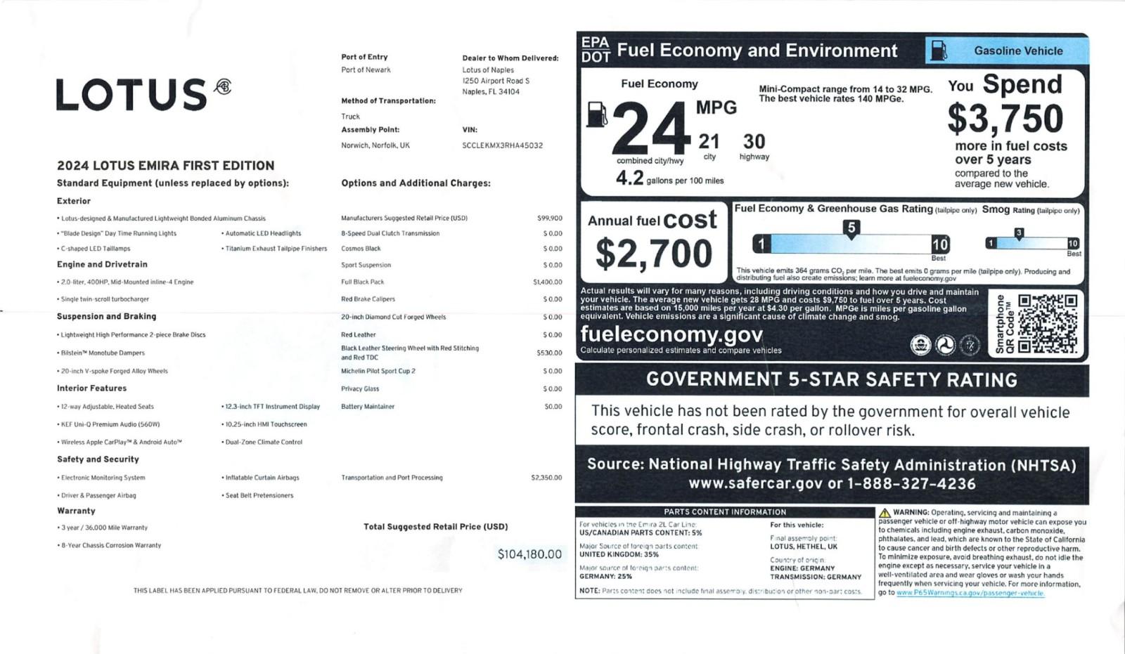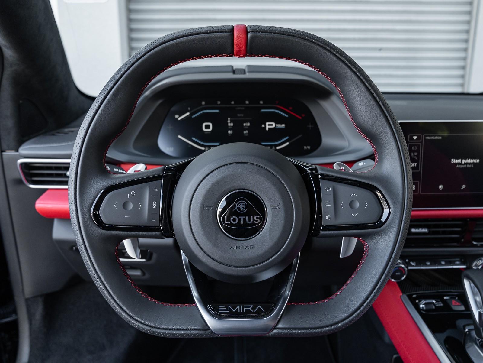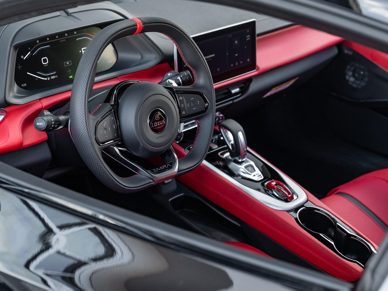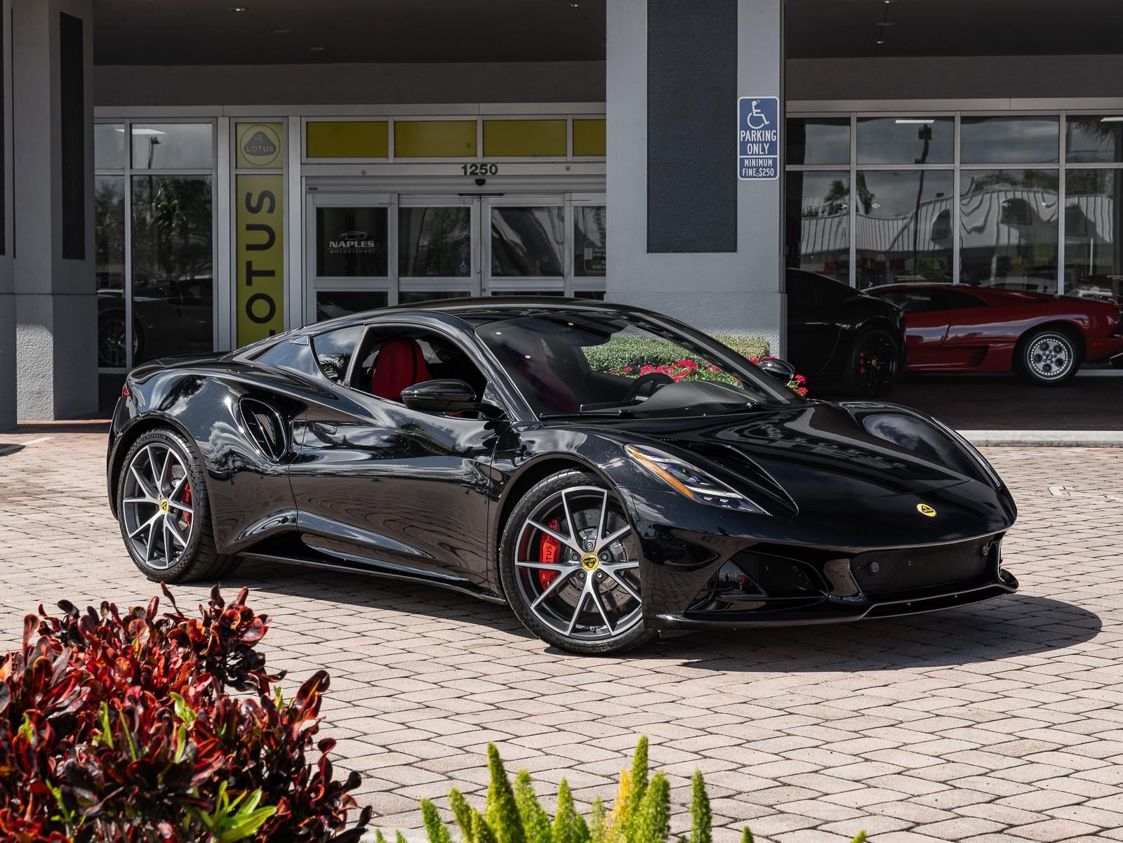 2024 Lotus Emira AMG Cosmos Black Red Leather 2.0L 400hp Inline-4 Engine 8-Speed Dual Clutch Options: - Sport Suspension - Full Black Pack - Black Leather Steering Wheel with Red Stitching and Red TDC - Michelin Pilot Sport Cup 2 - Privacy Glass