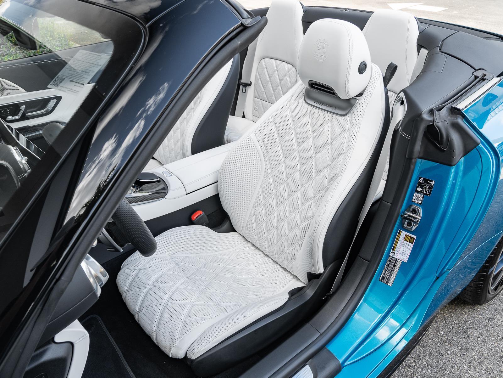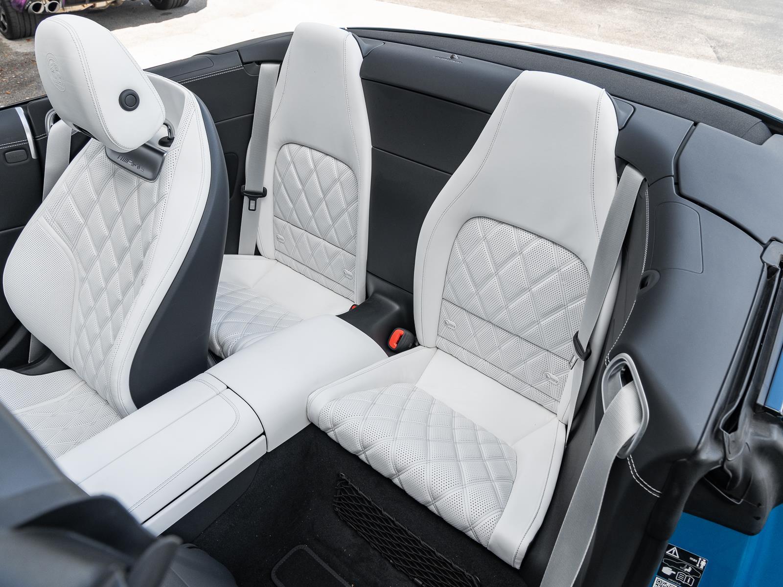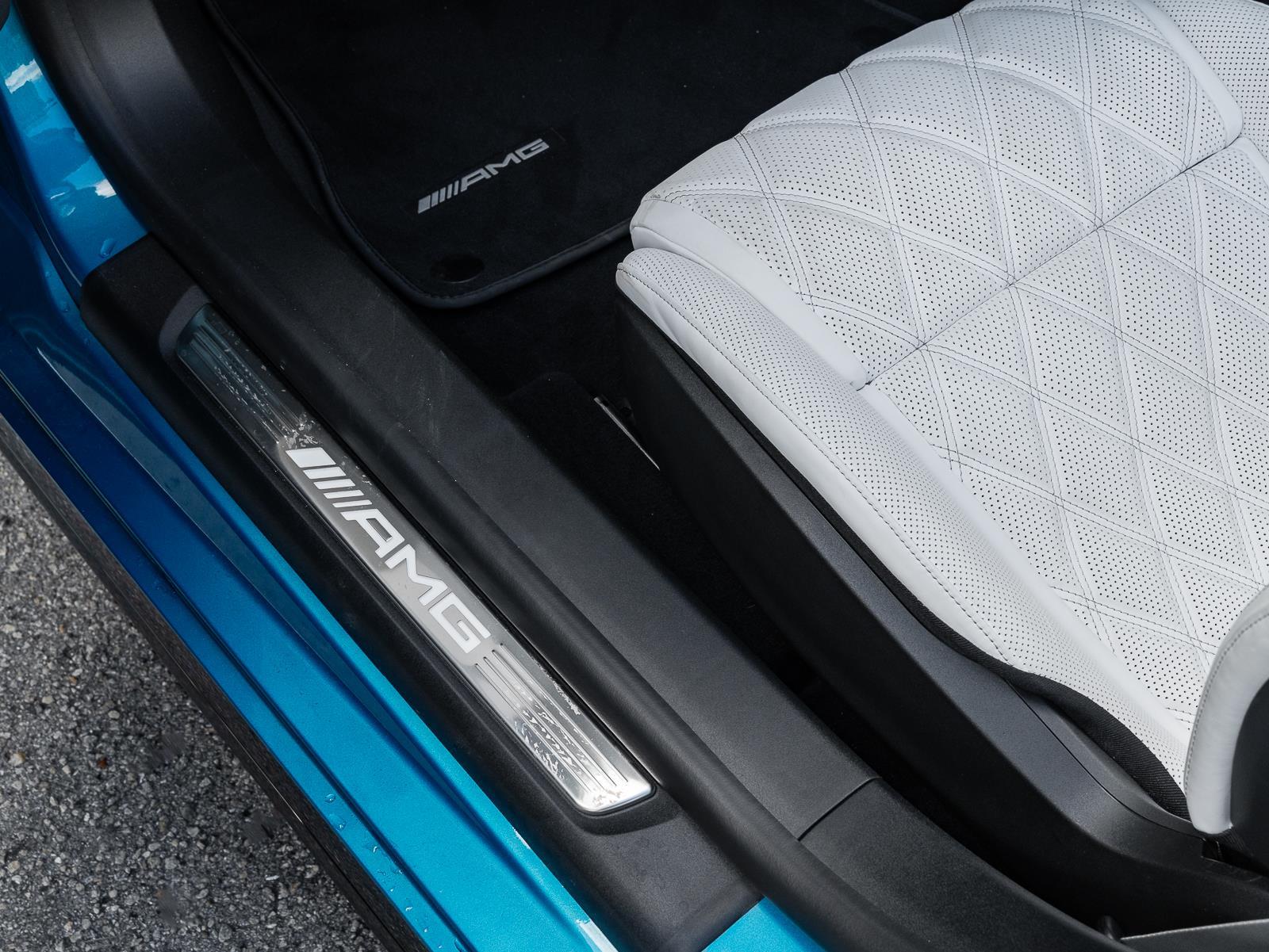 Options\n-Manufaktur hyper bluye metallic\n- manufaktur Crystal white/black nappa leather\n- amg carbon fiber trim\n- b26 amg aerodynamics package\n- Amg performance steering wheel in nappa leather\n- energizing air control\n- 21" Amg multi spoke y design black\n- seat belts in neva grey\n- Manufaktur black microfiber headliner\n- black soft top\n- cargo organizer system\n- DA2 Driver assistance package\n- DC1 Night package\n- DY2 Performance Line \n\n\n