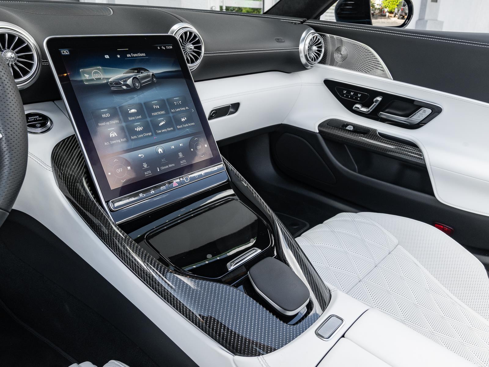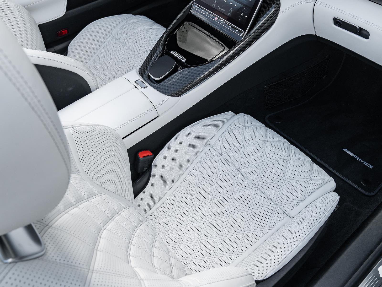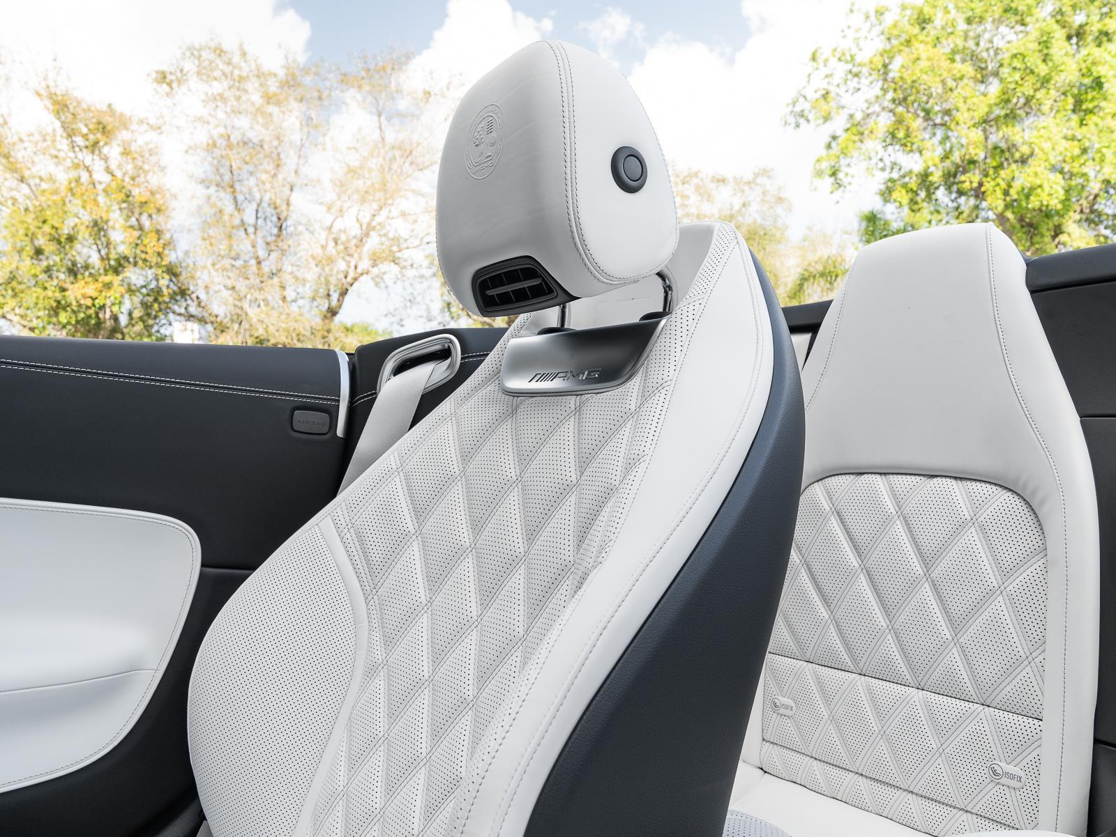 Options\n-Manufaktur hyper bluye metallic\n- manufaktur Crystal white/black nappa leather\n- amg carbon fiber trim\n- b26 amg aerodynamics package\n- Amg performance steering wheel in nappa leather\n- energizing air control\n- 21" Amg multi spoke y design black\n- seat belts in neva grey\n- Manufaktur black microfiber headliner\n- black soft top\n- cargo organizer system\n- DA2 Driver assistance package\n- DC1 Night package\n- DY2 Performance Line \n\n\n