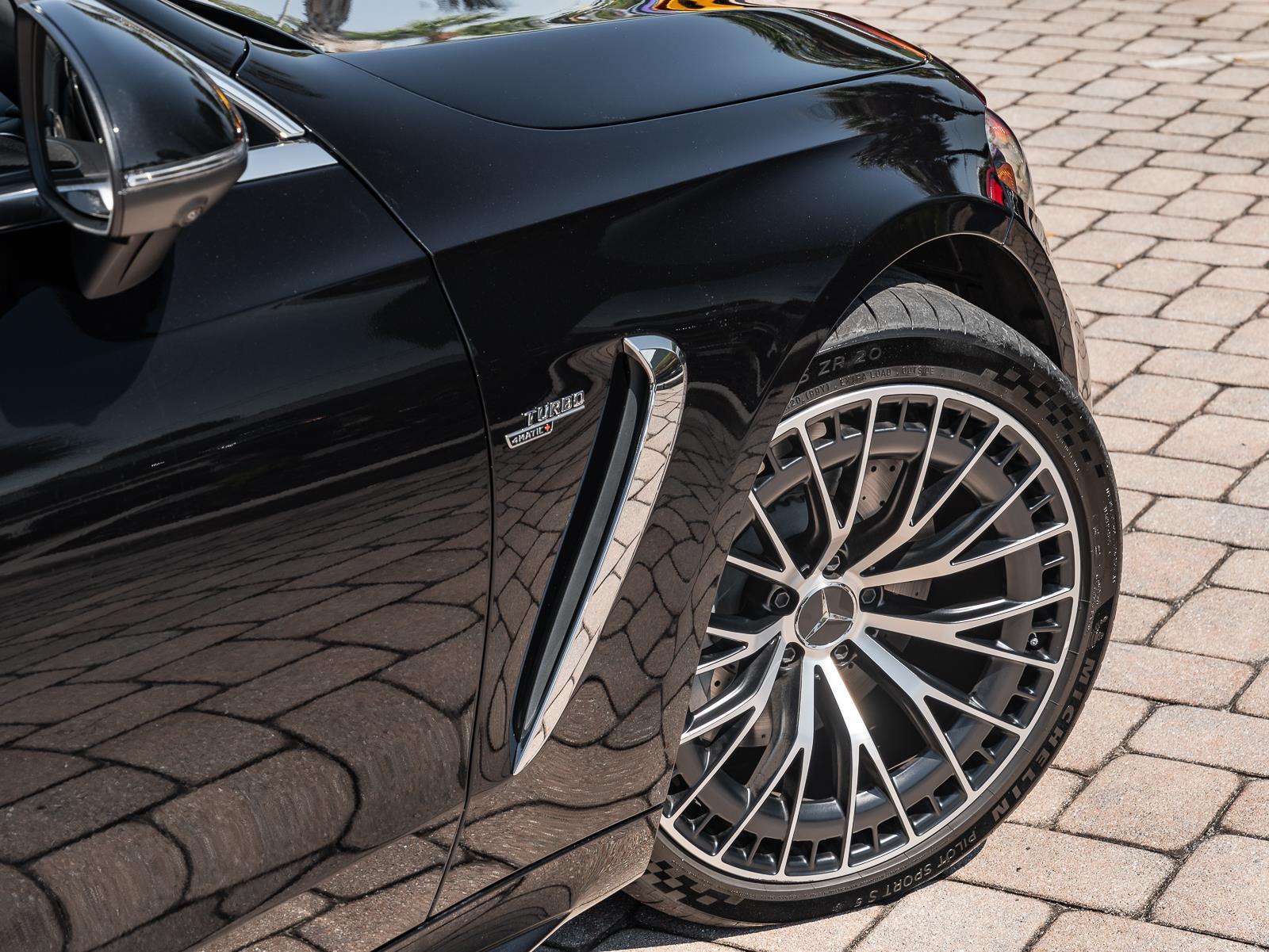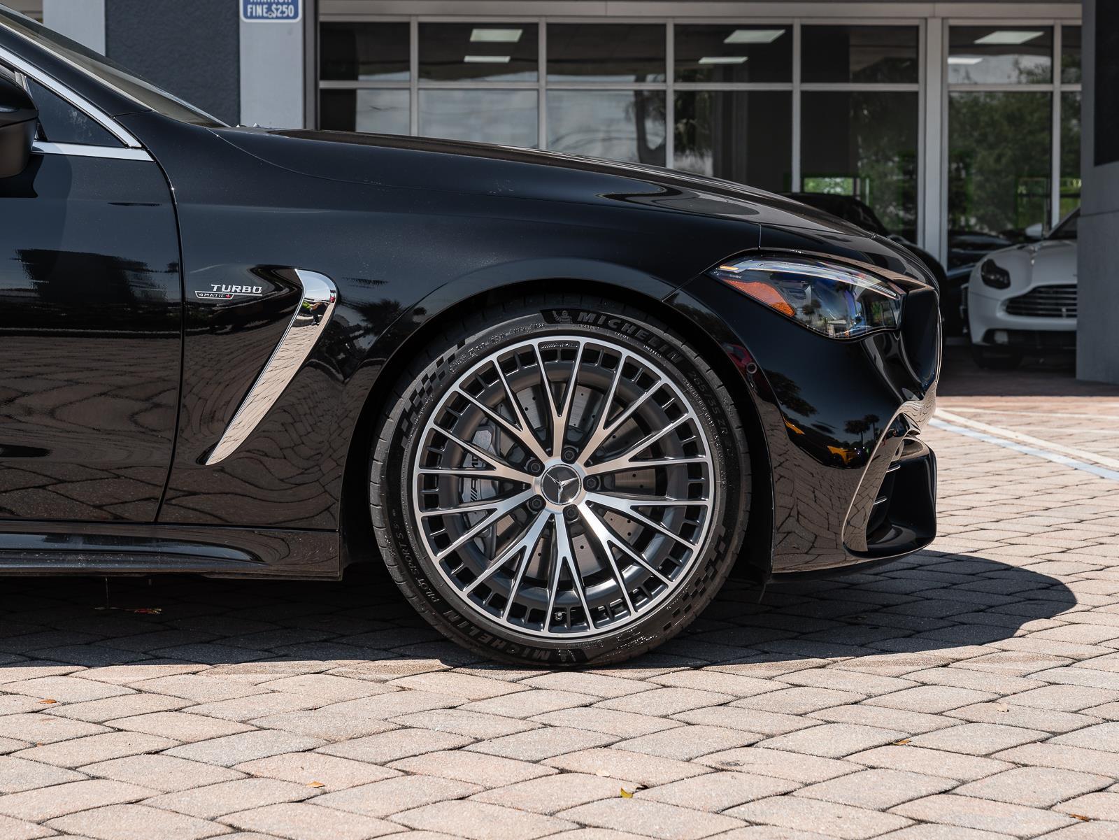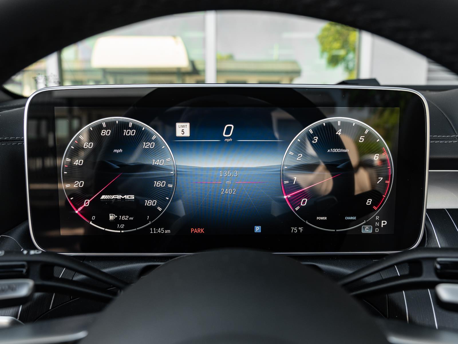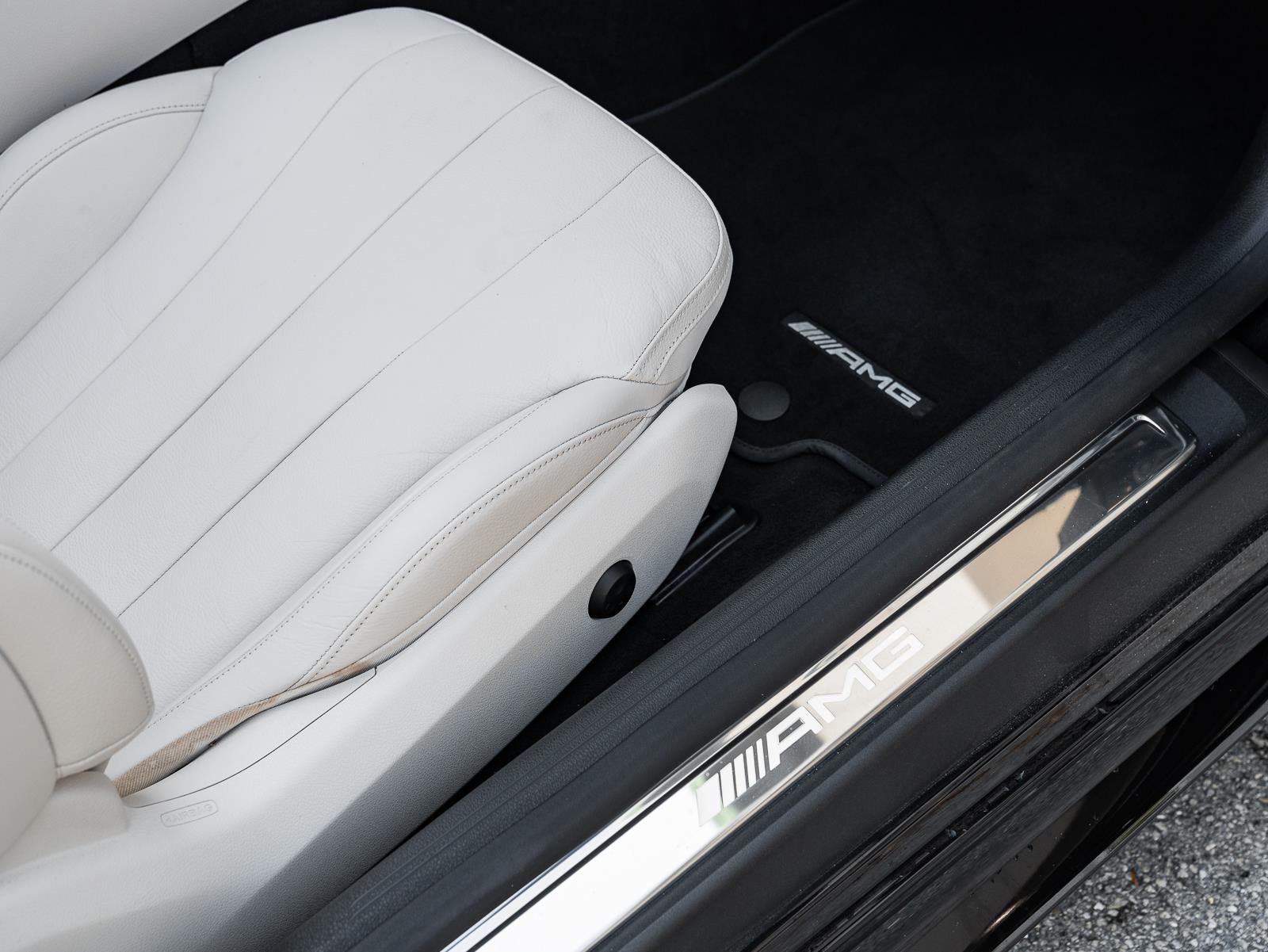 Options\n- Obsidian Black Metallic\n- Macchiato Beige/Black leather\n- Metal weave center console\n- Natural grain black wood with aluminum lines trim\n- AMG performance steering wheel in nappa leather\n- high performance tires\n- 20" AMG multi-spoke y design wheels with black accents\n- AMG Real Performance sound\n- Heated steering wheel\n\n\n