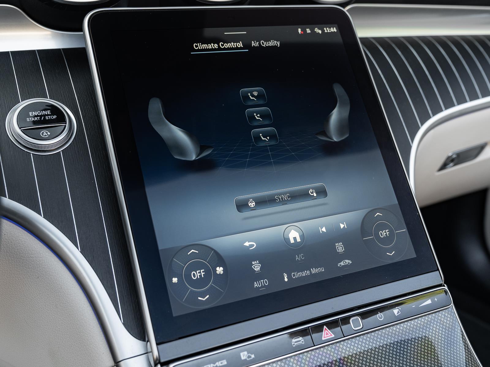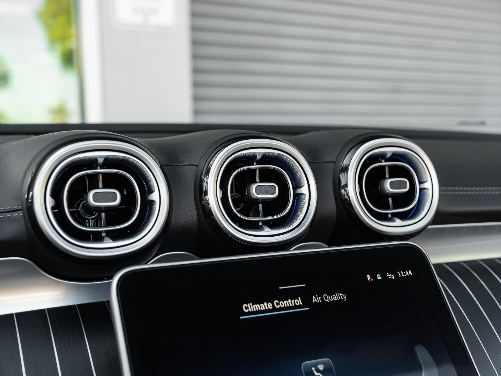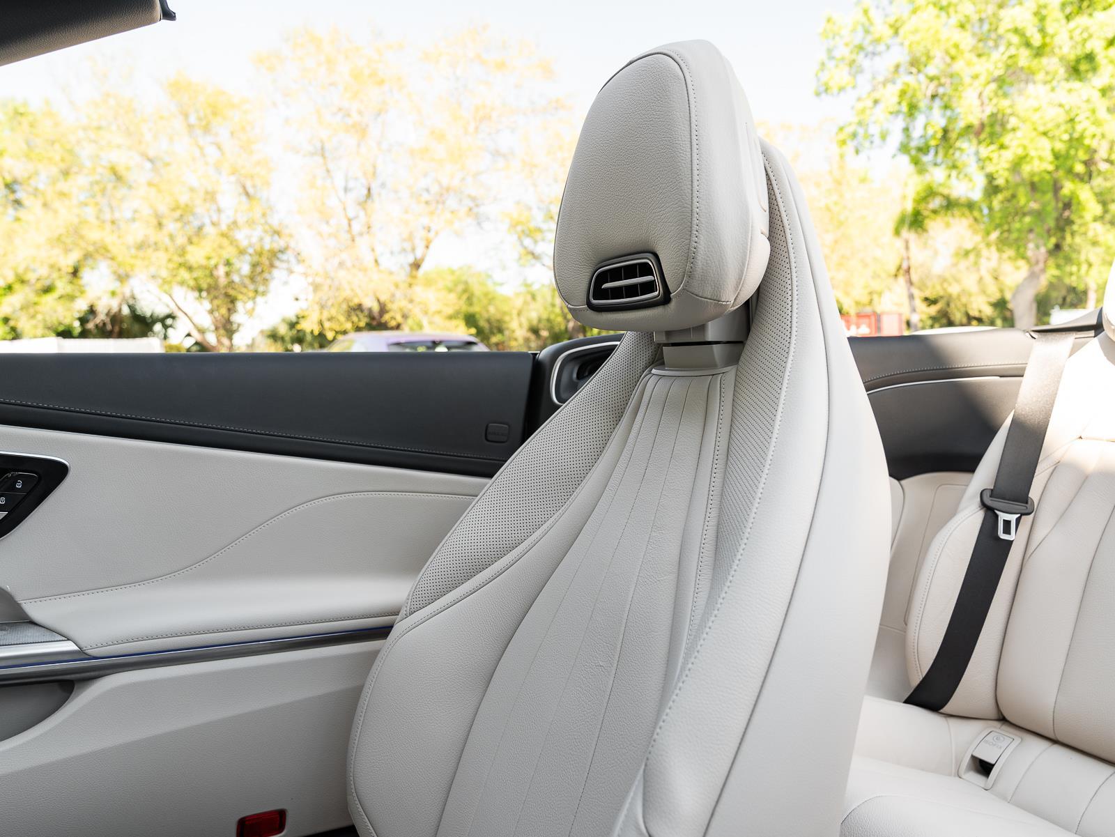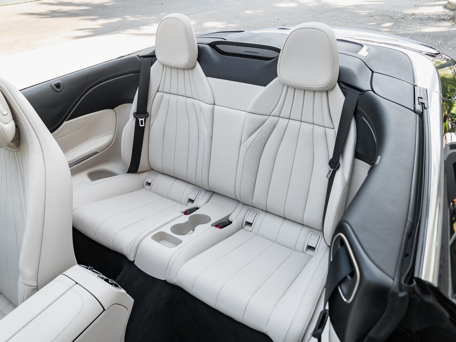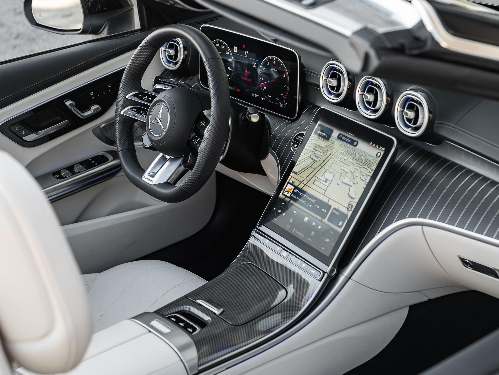 Options\n- Obsidian Black Metallic\n- Macchiato Beige/Black leather\n- Metal weave center console\n- Natural grain black wood with aluminum lines trim\n- AMG performance steering wheel in nappa leather\n- high performance tires\n- 20" AMG multi-spoke y design wheels with black accents\n- AMG Real Performance sound\n- Heated steering wheel\n\n\n