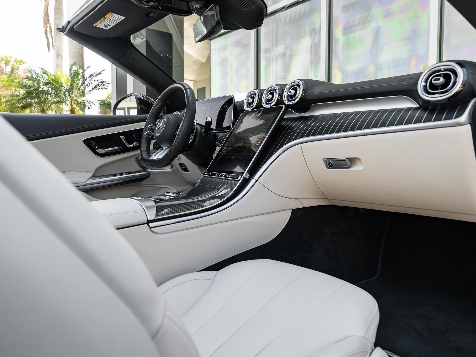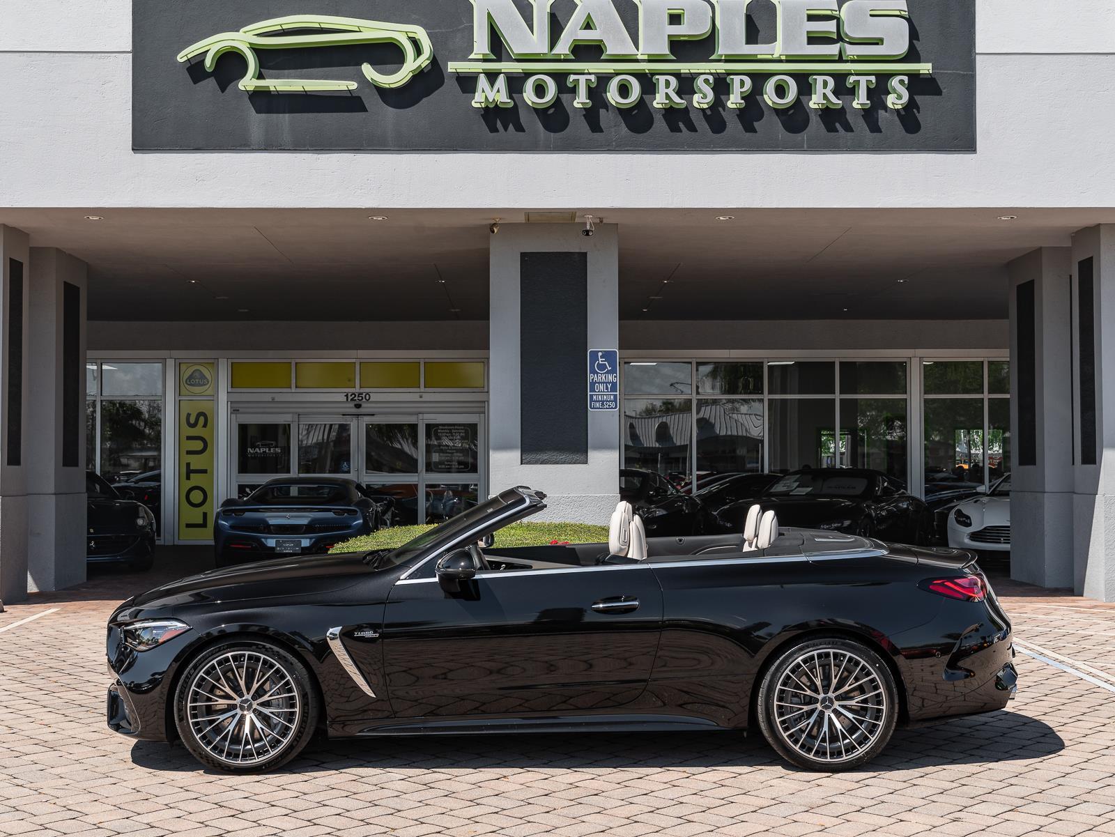 This 2025 Mercedes-Benz AMG CLE 53 finished in Obsidian Black Metallic over a Macchiato Beige interior with only 2,383 miles blends modern AMG performance with refined luxury in a sleek grand touring coupe platform. Power comes from an AMG enhanced 3.0 liter turbocharged inline 6 paired with a 48 volt mild hybrid system and electric auxiliary compressor, producing 443 horsepower and 413 lb ft of torque. Power is delivered through an AMG SPEEDSHIFT TCT 9 speed automatic transmission and the AMG Performance 4MATIC+ all wheel drive system, allowing the CLE 53 to accelerate from 0 to 60 mph in about 3.8 seconds while reaching a top speed electronically limited to 155 mph. Despite its substantial luxury equipment and advanced drivetrain technology, curb weight remains near 4,420 lbs, providing strong straight line performance and stable high speed touring capability. \n\nChassis engineering emphasizes both dynamic handling and everyday comfort, featuring AMG RIDE CONTROL suspension with four wheel independent architecture and adaptive damping that continuously adjusts to driving conditions. Active rear wheel steering enhances low speed maneuverability and high speed stability, while large cross drilled AMG performance brakes and staggered 20 inch wheels provide confident stopping power and grip. The cabin showcases Mercedes' latest technology with a fully digital instrument cluster, the MBUX infotainment system with a large central display, ambient lighting, premium Macchiato Beige leather upholstery, and advanced driver assistance systems designed for long distance comfort. With its low mileage, elegant Obsidian Black specification, and a powertrain that blends turbocharged performance with modern hybrid assistance, the AMG CLE 53 stands as a compelling luxury performance coupe that balances everyday usability with the dynamic character expected from AMG engineering. \n\n