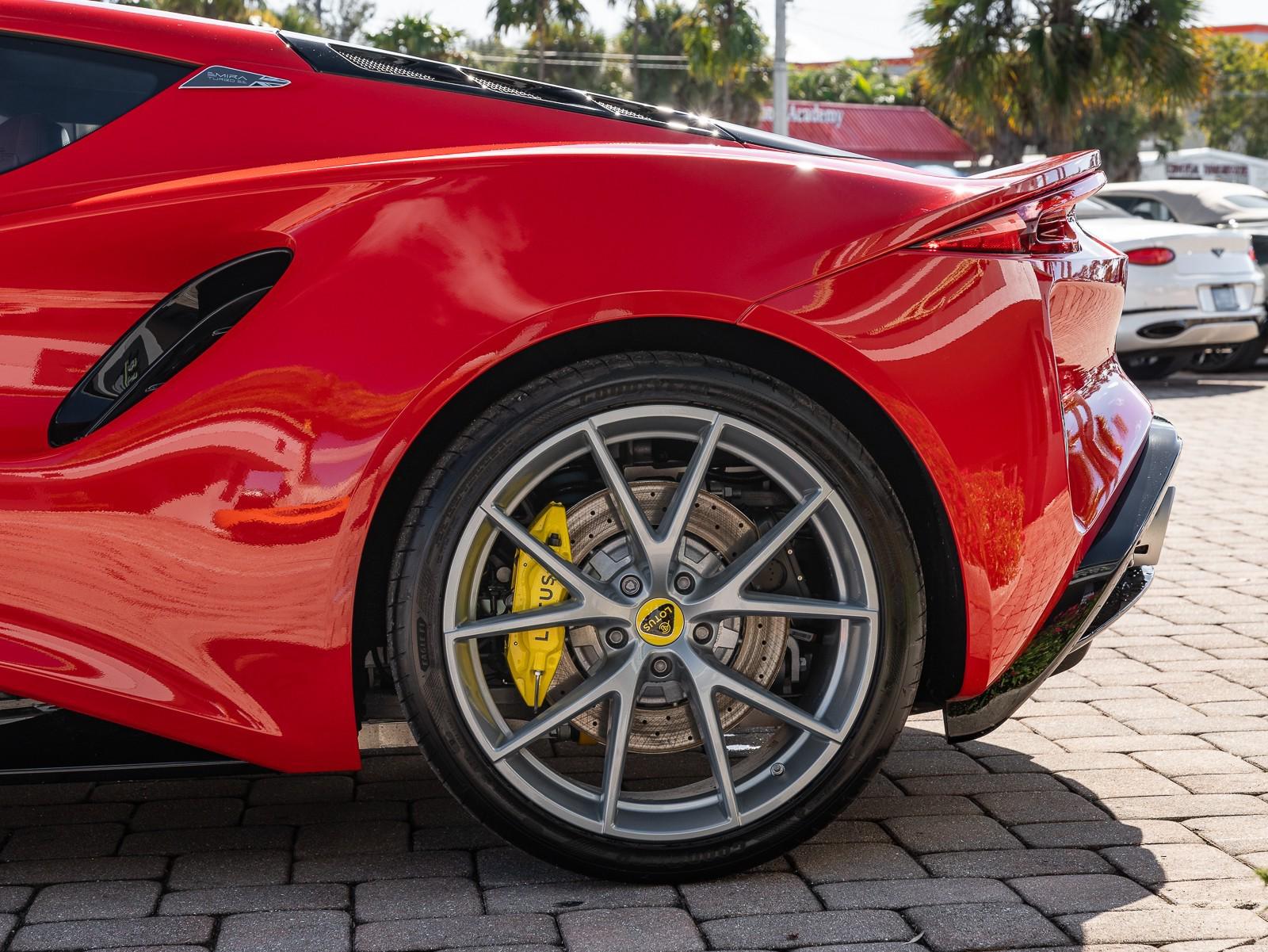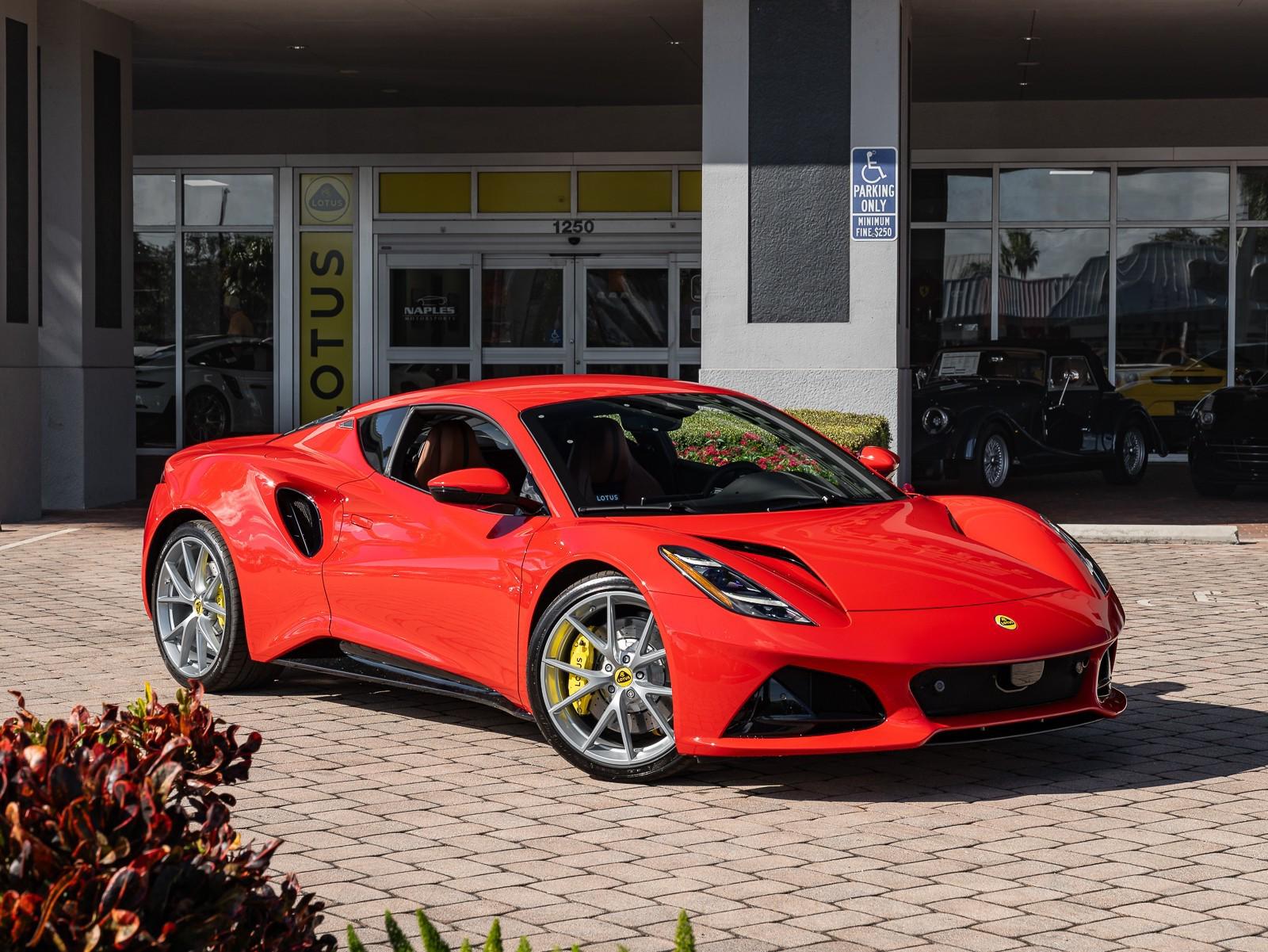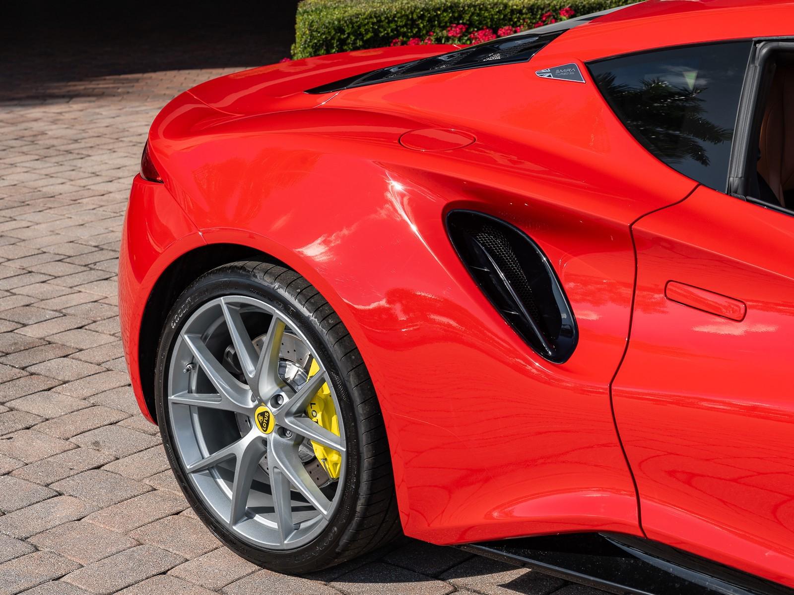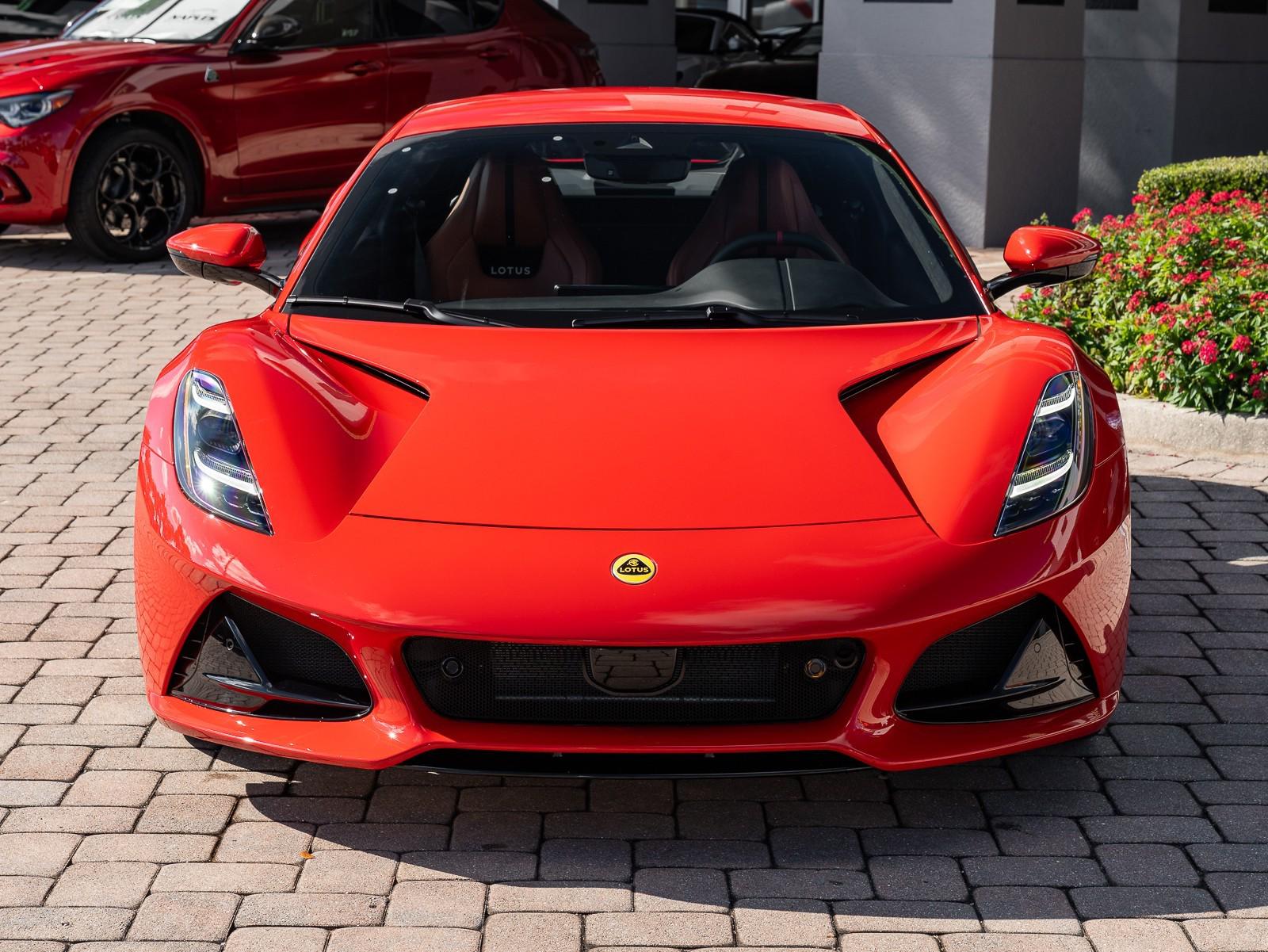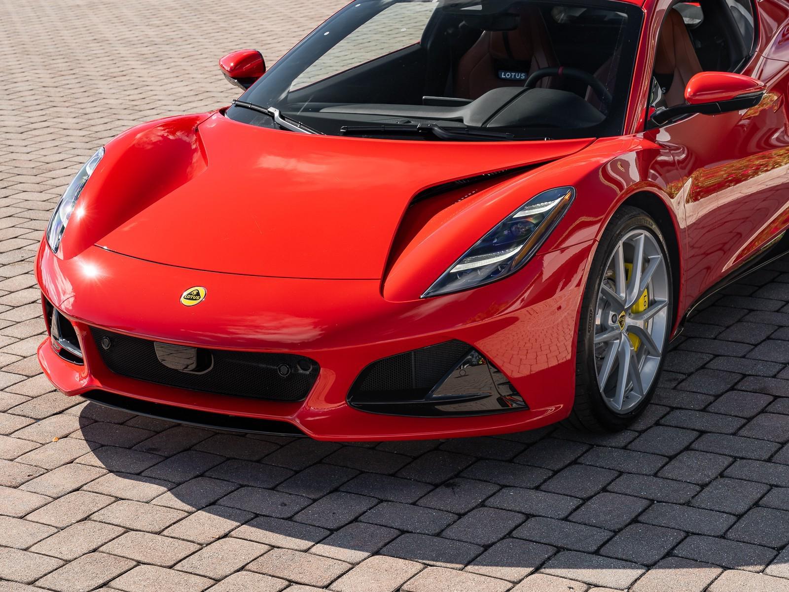 This 2026 Lotus Emira Turbo SE is the high-performance evolution of Lotuss final internal combustion sports car, featuring a mid mounted 2.0 liter turbocharged inline four engine sourced from Mercedes AMG that produces an impressive 400 hp and 354 lb-ft of torque . Power is delivered exclusively through a lightning-fast 8-speed dual-clutch automatic transmission (DCT) which has been recalibrated for the 2026 model year to provide even sharper shiftspropelling the roughly 3,230 lb coupe from 0 to 60 mph in approximately 4 seconds toward a top speed of 180 mph . Dressed in striking Vivid Red over a sophisticated Tan leather interior , this Special Edition (SE) version comes standard with the Lotus Drivers Pack , which includes a softer touring suspension and cross-drilled two-piece brake discs, effectively bridging the gap between a daily-drivable grand tourer and a track-focused weapon. Notable 2026 refinements include a revised cooling system for sustained hard driving and updated aerodynamics that maintain the Emira's mini-supercar aesthetic while ensuring high-speed stability. Options: - Vivid Red - Touring Suspension - Lower black Pack - Yellow Brake Calipers - 20 V Spoke Ultra Lightweight Gloss Silver Wheels - Tan Leather Interior - Black Leather Steering Wheel with Red TDC and Stitching - Alcantara Headliner - Yellow and Black Nose Badge and Center Caps - KEF Premium Audio System - Goodyear Eagle F1 Supersport - Sport Pedals