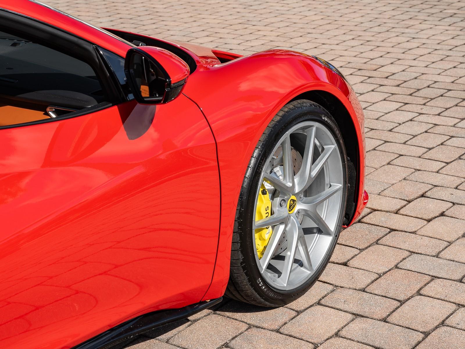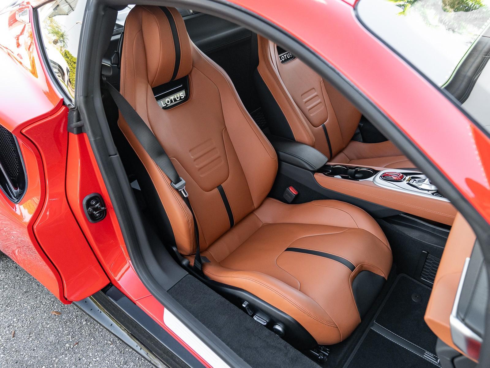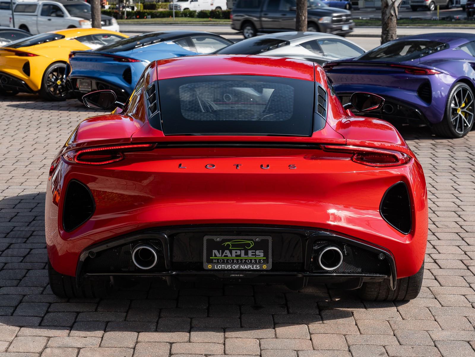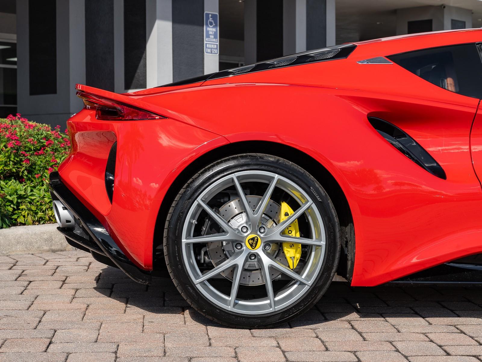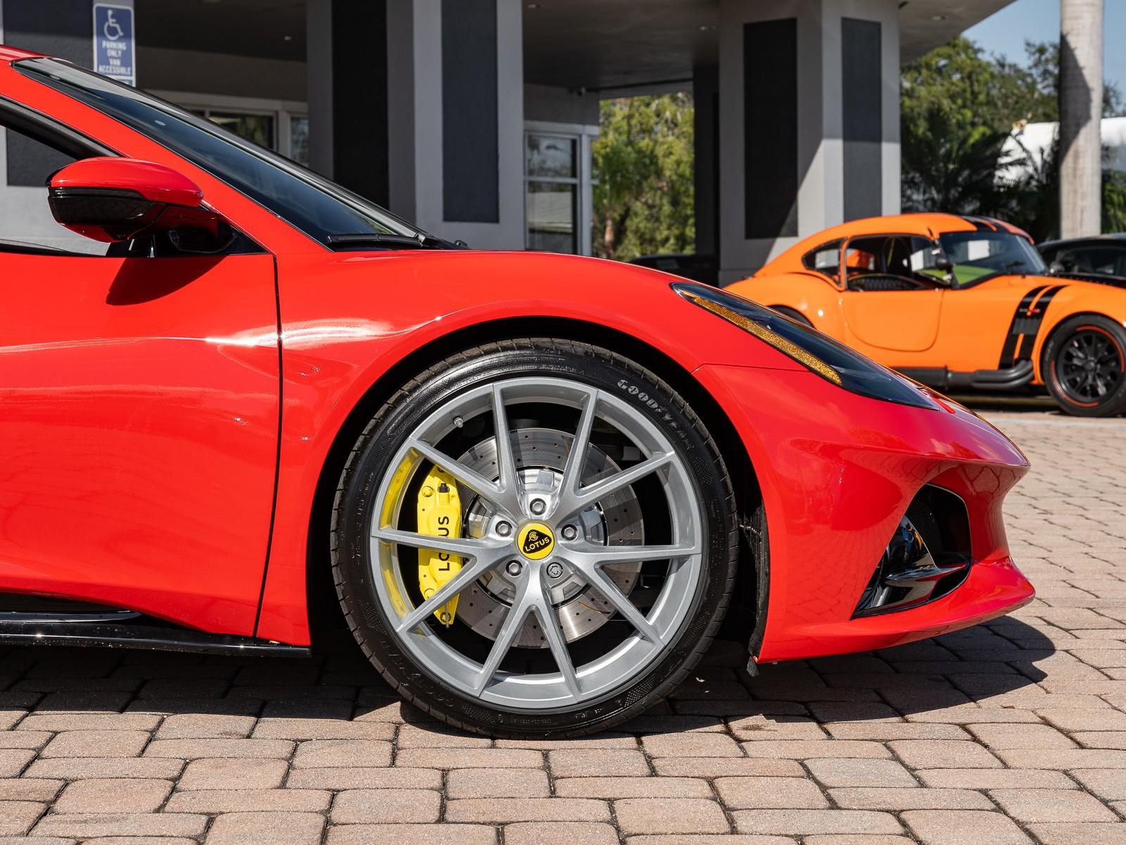 This 2026 Lotus Emira Turbo SE is the high-performance evolution of Lotuss final internal combustion sports car, featuring a mid mounted 2.0 liter turbocharged inline four engine sourced from Mercedes AMG that produces an impressive 400 hp and 354 lb-ft of torque . Power is delivered exclusively through a lightning-fast 8-speed dual-clutch automatic transmission (DCT) which has been recalibrated for the 2026 model year to provide even sharper shiftspropelling the roughly 3,230 lb coupe from 0 to 60 mph in approximately 4 seconds toward a top speed of 180 mph . Dressed in striking Vivid Red over a sophisticated Tan leather interior , this Special Edition (SE) version comes standard with the Lotus Drivers Pack , which includes a softer touring suspension and cross-drilled two-piece brake discs, effectively bridging the gap between a daily-drivable grand tourer and a track-focused weapon. Notable 2026 refinements include a revised cooling system for sustained hard driving and updated aerodynamics that maintain the Emira's mini-supercar aesthetic while ensuring high-speed stability. Options: - Vivid Red - Touring Suspension - Lower black Pack - Yellow Brake Calipers - 20 V Spoke Ultra Lightweight Gloss Silver Wheels - Tan Leather Interior - Black Leather Steering Wheel with Red TDC and Stitching - Alcantara Headliner - Yellow and Black Nose Badge and Center Caps - KEF Premium Audio System - Goodyear Eagle F1 Supersport - Sport Pedals